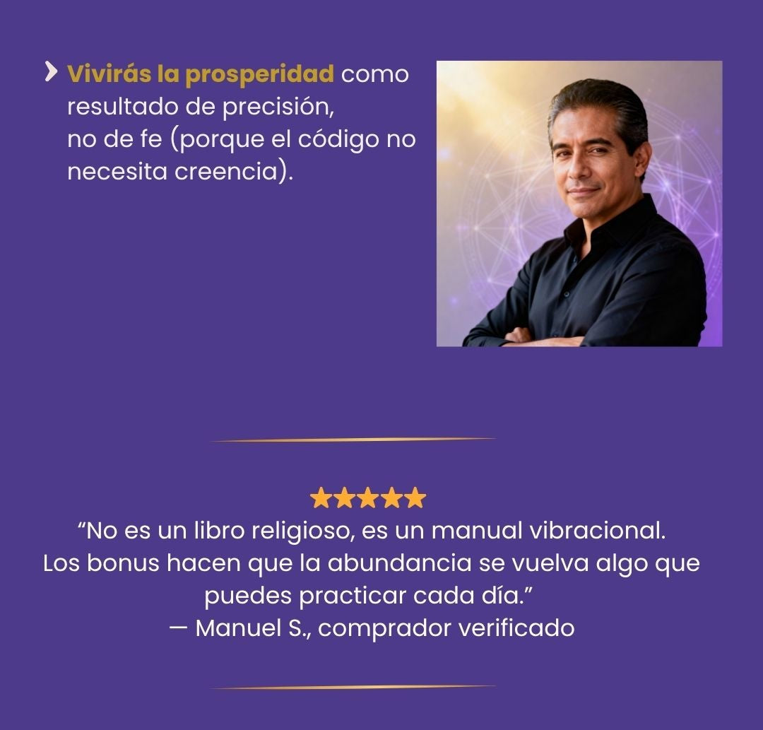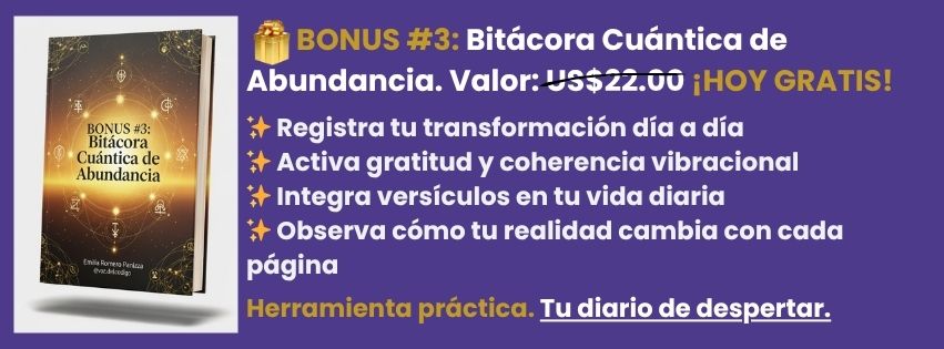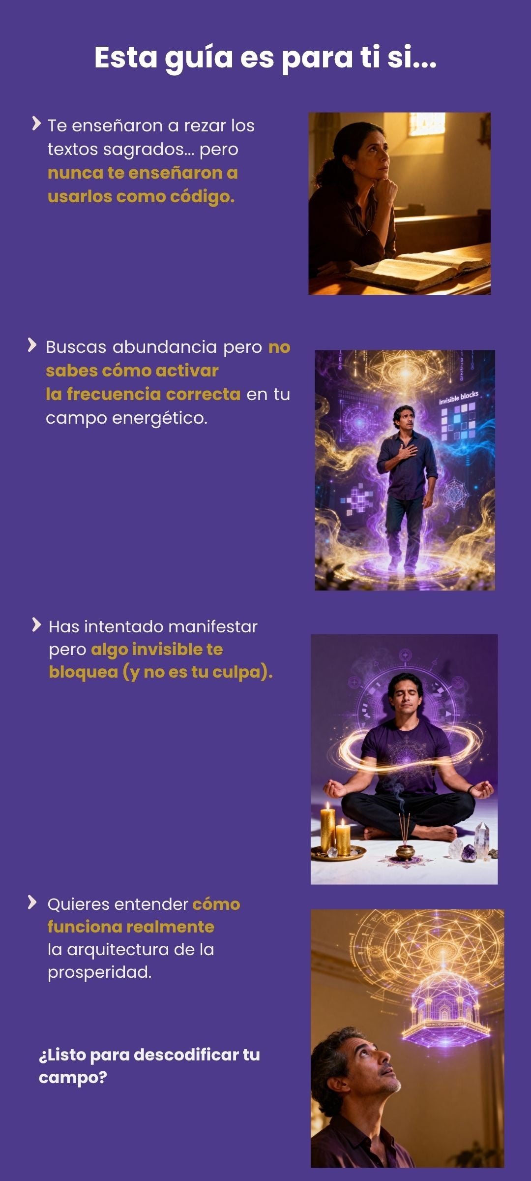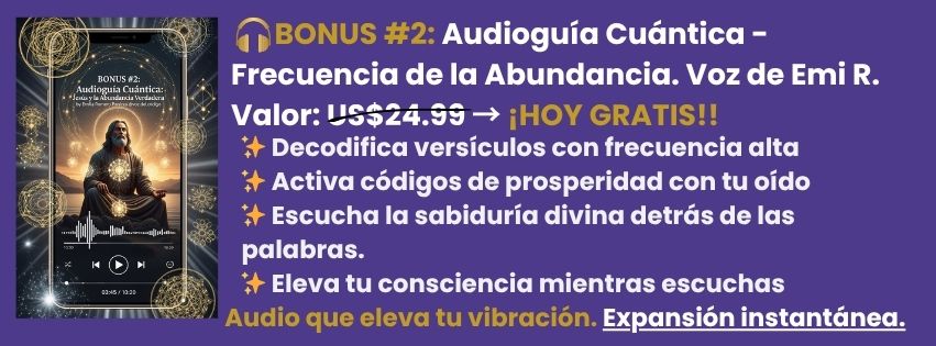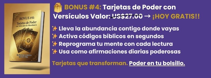 Explora la guía, lee los versículos descodificados, practica las llaves de abundancia y siente en tu cuerpo la vibración que se activa.