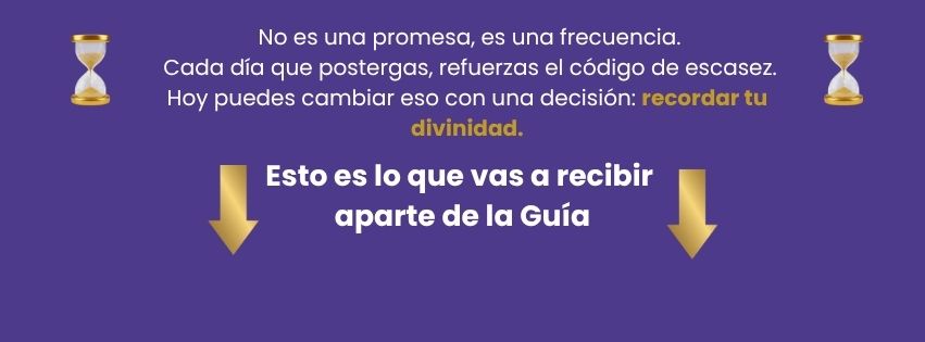 ¿Por qué? Porque esta guía no está hecha para sumar PDFs en tu carpeta. Está diseñada para mover energía real en tu vida. Y si no lo logra, prefiero que conserves tu inversión para otro camino que sí resuene contigo.