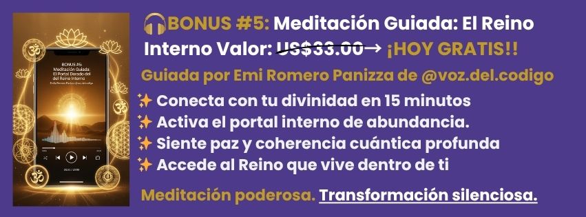 Además de la guía principal Jesús y la Abundancia Verdadera, también desbloqueas los 7 bonos exclusivos (audios, meditaciones, imprimibles y mini ebooks) que elevan la experiencia y multiplican tu transformación.